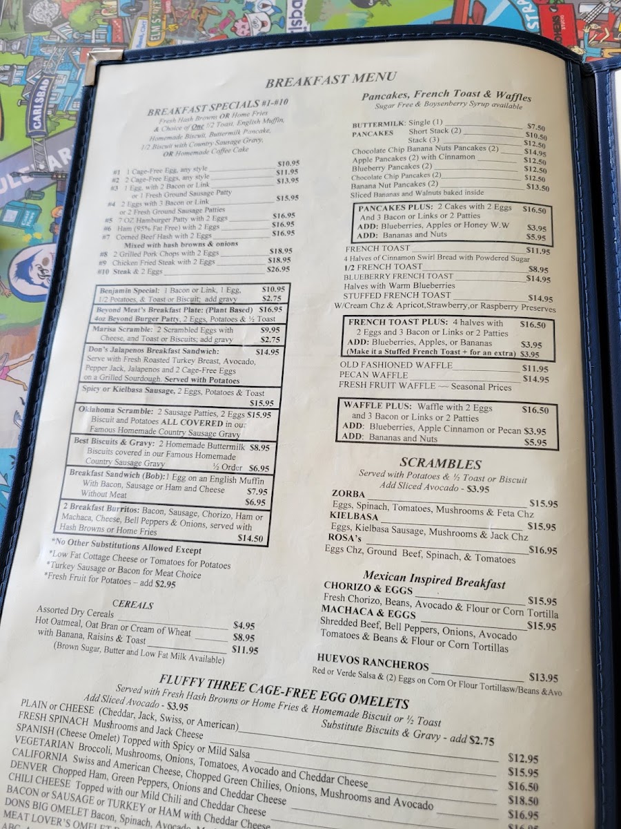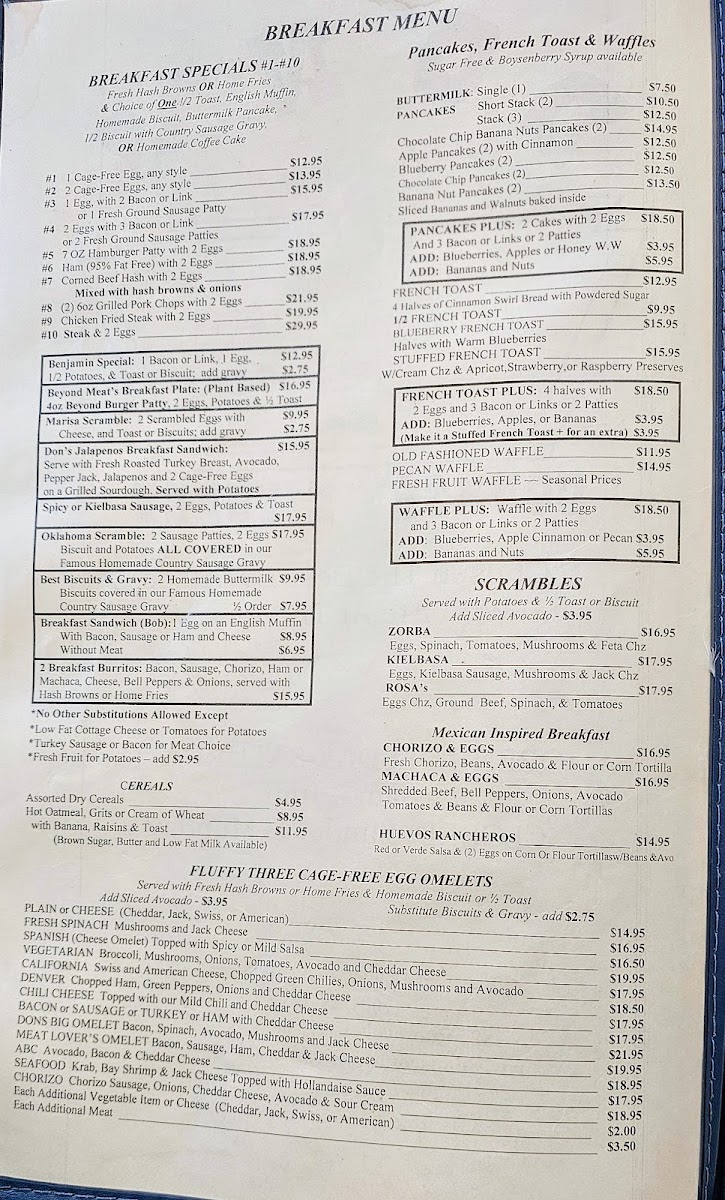 Bacon, sausage, chorizo, ham or machaca, cheese, bell peppers & onions, served with hash browns or home fries.