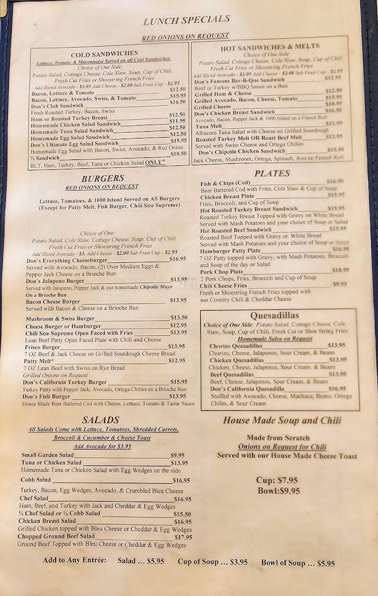 Swiss and American cheese, chopped green chilies, onions, mushrooms and avocado.